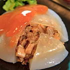 最讚的吃法:起一少許油鍋將解凍後肉圓入鍋,以小火油煎,至兩面金黃即可,外層香香脆脆,裡面QQ軟軟的!口感絕佳,令人食指大動,一吃就上癮!